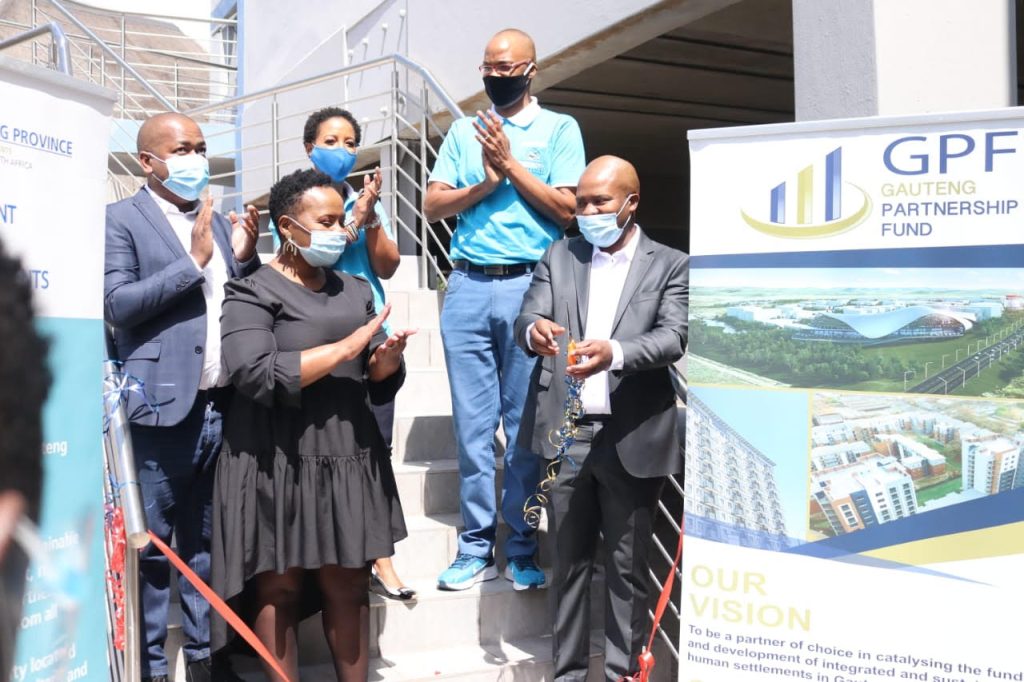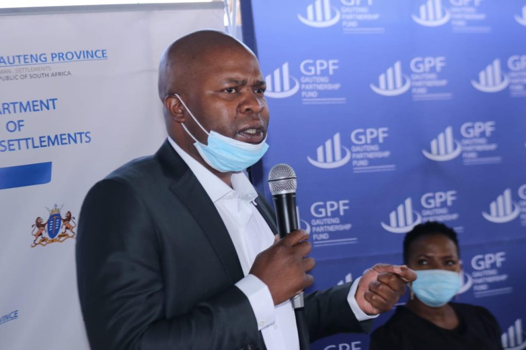 The Gauteng MEC for Human Settlements, Urban Planning and COGTA, Lebogang Maile, Ekurhuleni Mayor, Mr Mzwandile Masina and the Chairperson of GPF Ms Mahlengi Bhengu today launched Rehoboth Hills affordable housing development in Germiston, Ekurhuleni.